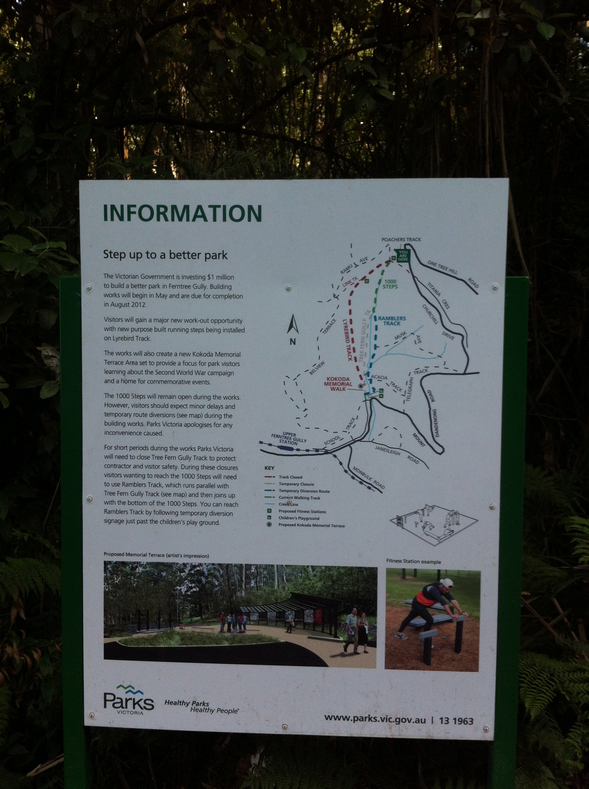 Recently there has been an upgrade to the Kokoda Memorial Trail with shelters and memorials.  They have also included a second set of steps on Lyrebird Track to ease the traffic load and provide runners with a better running track and free up the trail for tourists.
